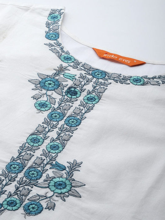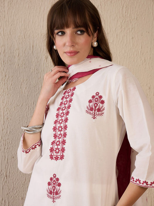 Dhiyona IE Floral Embroidered Thread Work Pure Cotton Kurta with Trousers & With Dupatta