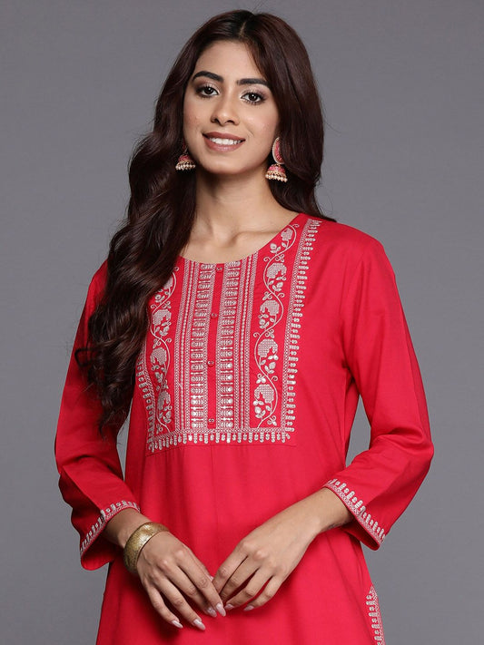 Dhiyona IE Floral Embroidered Round Neck Sequins Straight Kurta