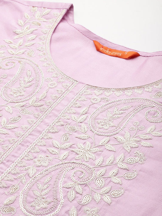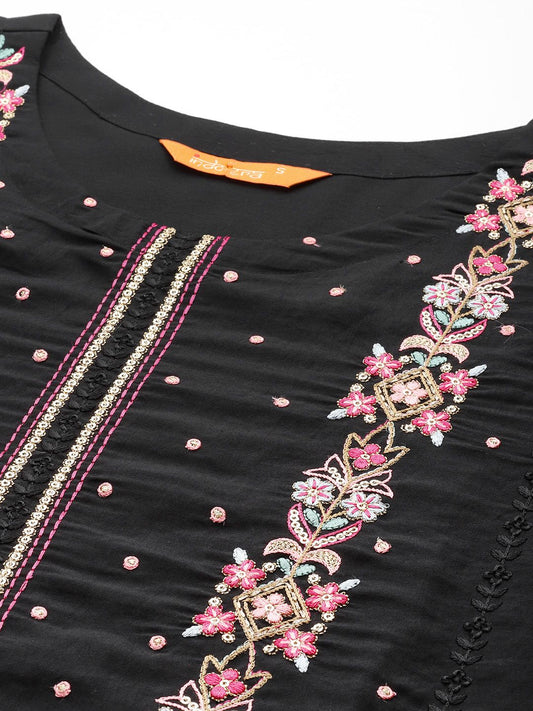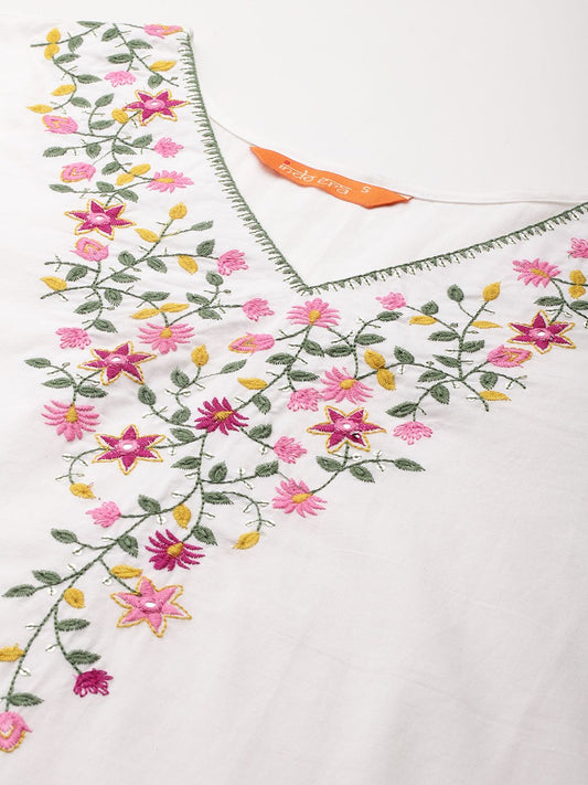 Dhiyona IE Floral Yoke Design Thread Work Pure Cotton Kurta With Trousers