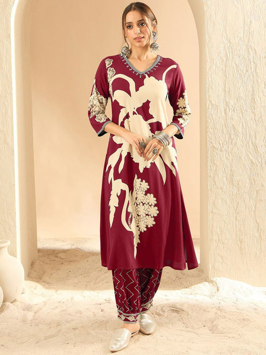 Buy 2 Get 1 FreeVendor:Dhiyona IEDhiyona IE Floral Printed Pure Cotton V-Neck A-Line Kurta With Palazzos
