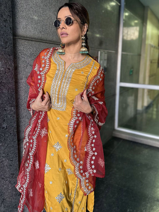 Dhiyona IE Ethnic Motifs Embroidered Gotta Patti Kurta with Trousers & Dupatta