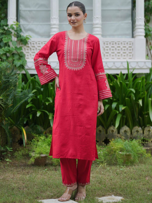Dhiyona IE Women Ethnic Motifs Embroidered Regular Sequinned Kurta with Trousers