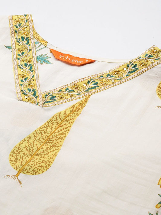 Dhiyona IE Women Floral Printed Regular Sequinned Detail Pure Cotton Kurta with Trousers