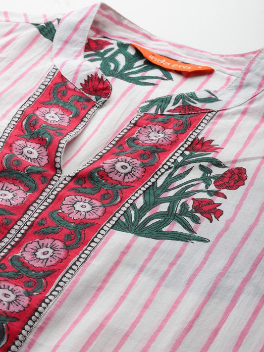 Dhiyona IE Women Tribal Striped Regular Pure Cotton Kurtas & Trousers With Dupatta