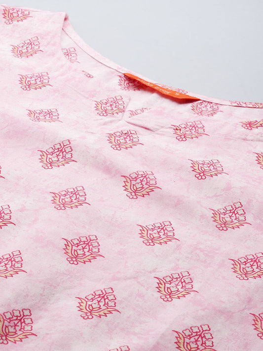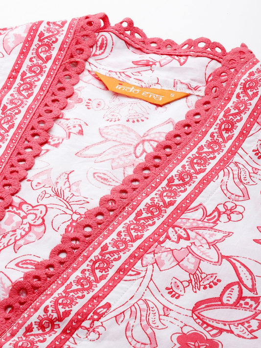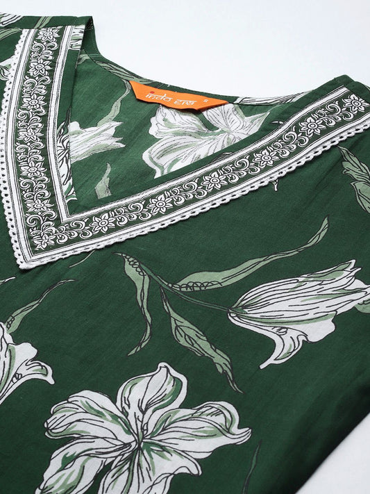 Dhiyona IE Floral Printed Pure Cotton Kurti with Trousers