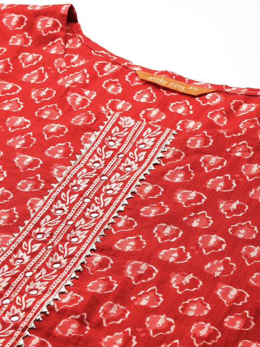 Dhiyona IE Floral Printed Mandarin Collar Pure Cotton A-Line Kurta With Trouser