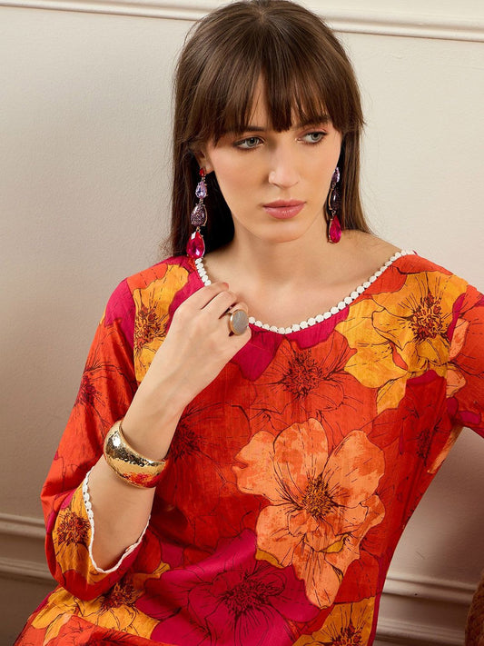Dhiyona IE Floral Printed Pure Cotton Kurta with Trousers