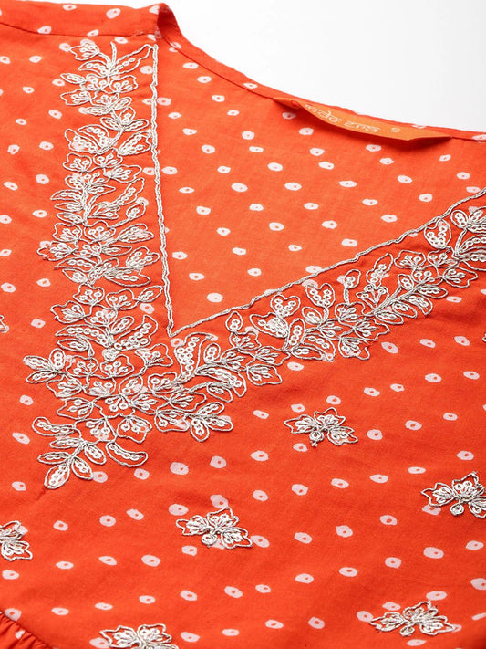Dhiyona IE Bandhani Embroidered Empire Pure Cotton Kurta with Trousers