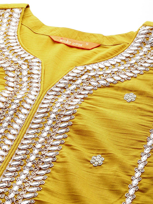 Dhiyona IE Women Ethnic Motifs Embroidered Gotta Patti Kurta with Trousers & Dupatta