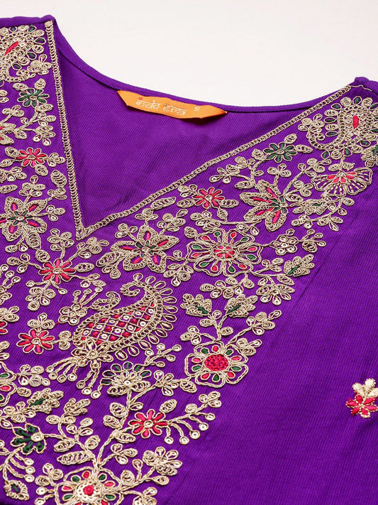 Dhiyona IE Ethnic Motifs Embroidered Thread Work Pure Cotton Kurta With Trousers & Dupatta