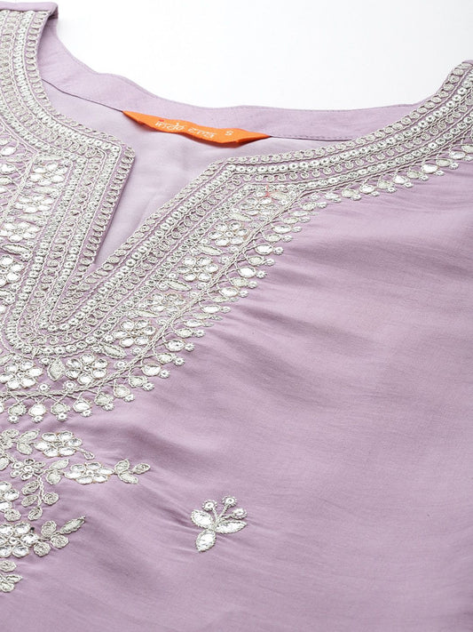 Dhiyona IE Ethnic Motifs Embroidered Regular Sequinned Kurta with Trousers & Dupatta