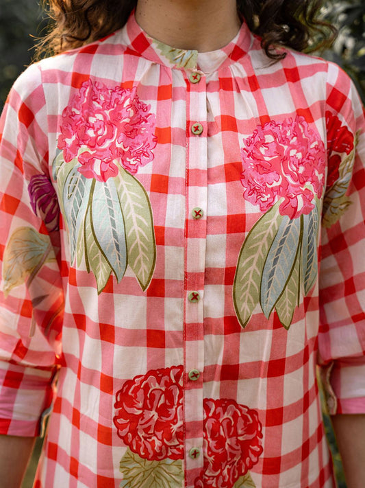 Dhiyona IE Floral Printed Mandarin Collar A-Line Pure Cotton Kurta With Trousers