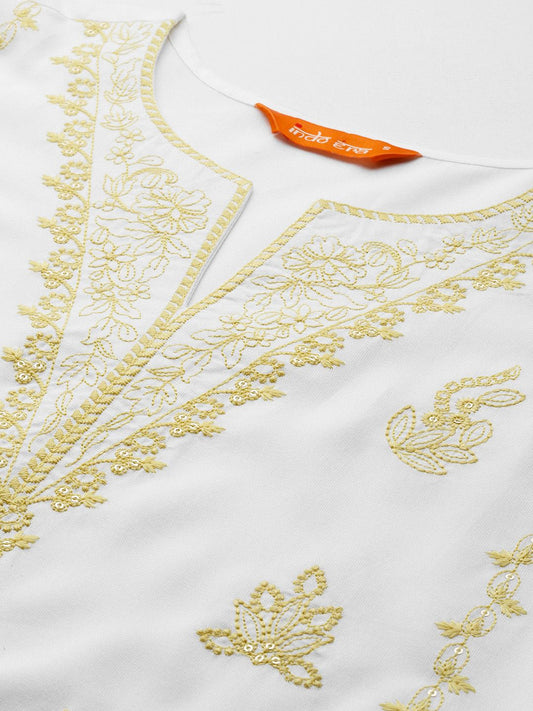 Dhiyona IE Women Ethnic Motifs Embroidered Thread Work Floral Kurta