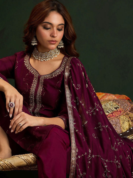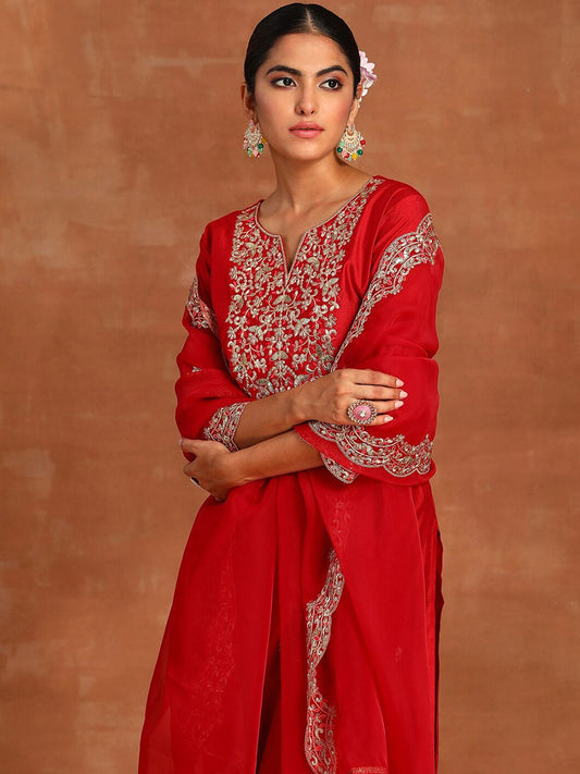 Dhiyona IE Ethnic Motifs Zari Embroidered Kurta With Trousers & Dupatta