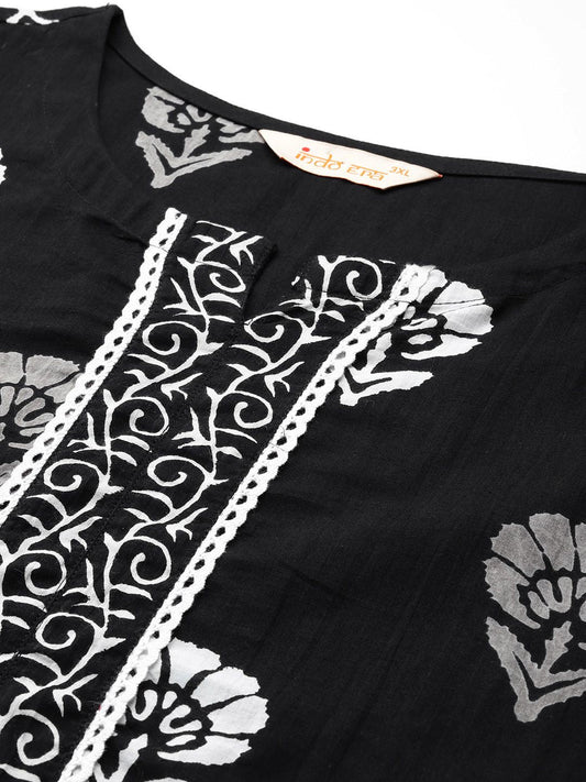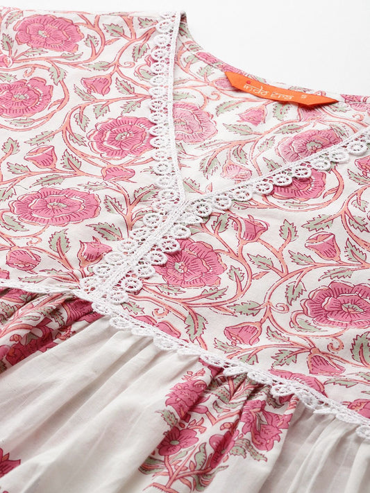 Dhiyona IE Women Floral Printed Empire Pure Cotton Kurta with Trousers