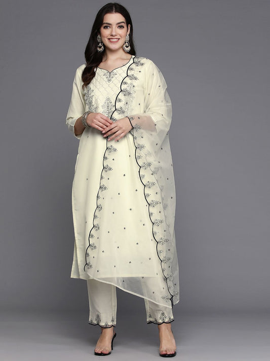 Dhiyona IE Floral Embroidered Sequinned Kurta With Trousers & Dupatta