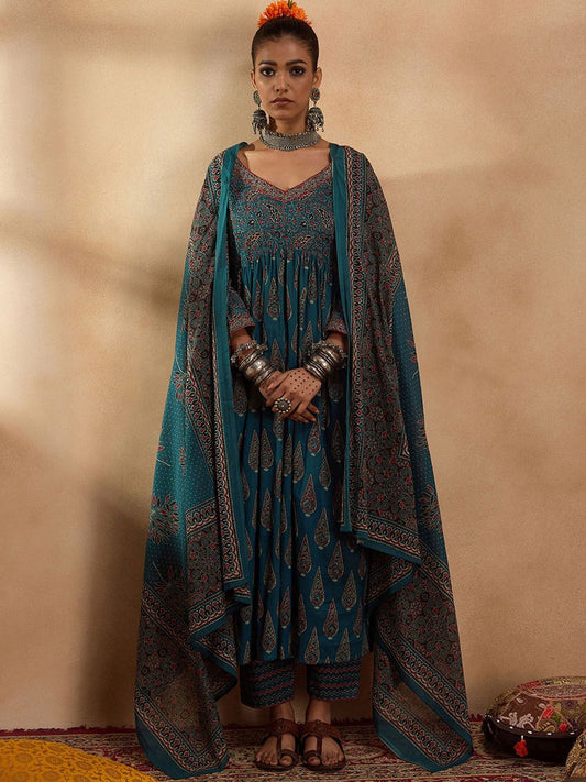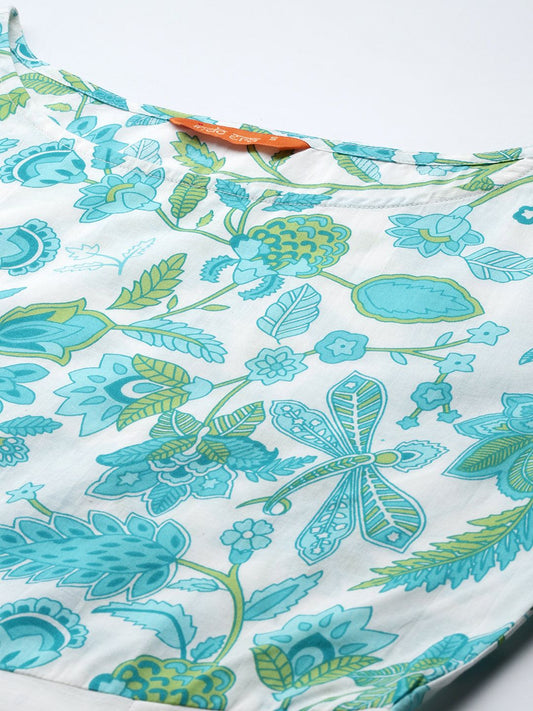 Dhiyona IE Floral Printed Empire Pure Cotton A-Line Kurta with Trousers & Dupatta