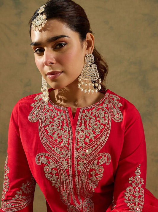 Buy 2 Get 1 FreeVendor:Dhiyona IEDhiyona IE Floral Embroidered Thread Work Pure Cotton A-Line Kurta With Trousers