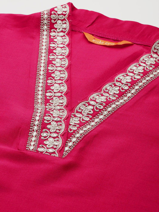 Dhiyona IE Women Ethnic Motifs Embroidered Regular Thread Work Kurta with Trousers & Dupatta