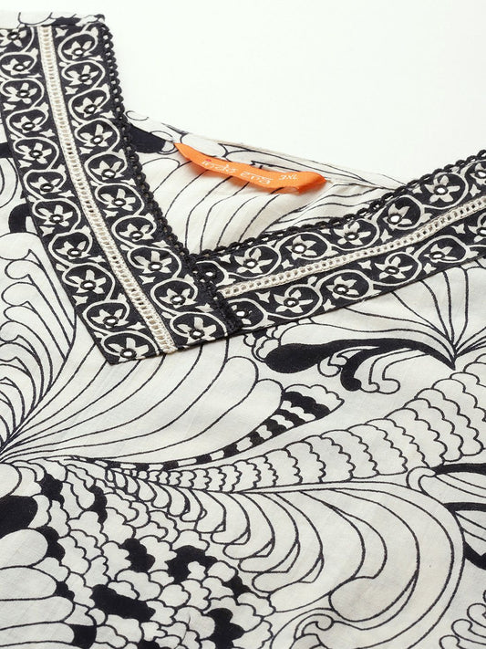 Dhiyona IE Floral Printed Pure Cotton Kurta with Trousers