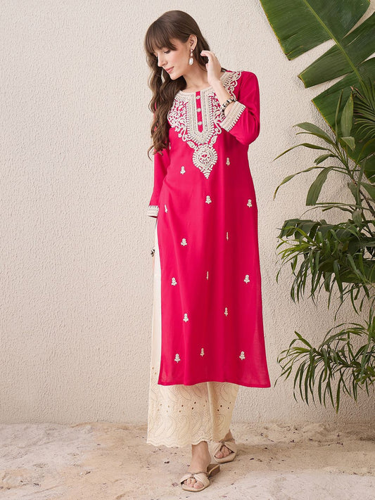 Dhiyona IE Ethnic Motifs Embroidered Thread Work Straight Kurta
