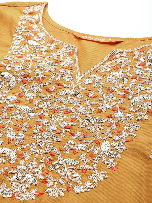 Dhiyona IE Floral Embroidered Sequinned Liva Kurta with Trousers & Dupatta