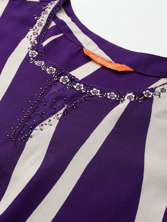Dhiyona IE Printed Beads and Stones Kurta with Palazzos