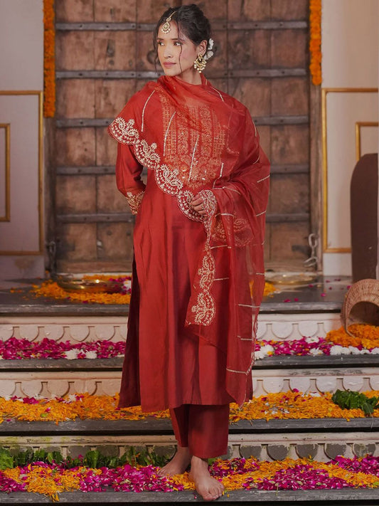 Dhiyona IE Ethnic Motifs Embroidered Sequinned Kurta With Trousers & Dupatta