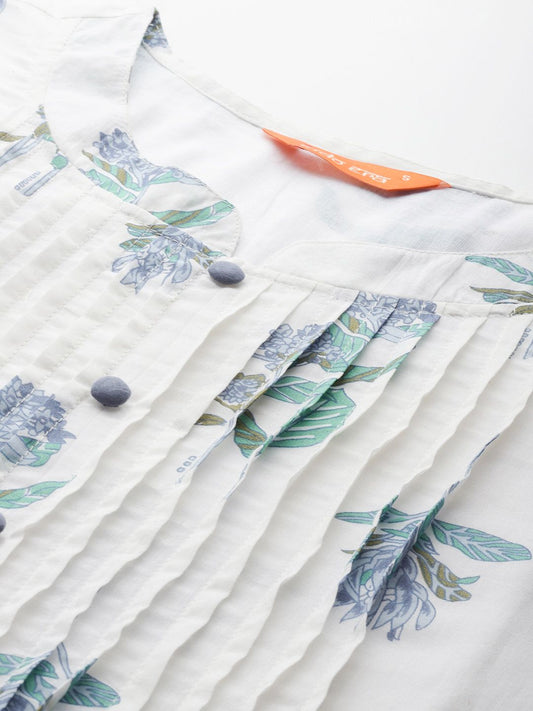 Dhiyona IE Floral Printed Pleated Pure Cotton Kurta with Trousers