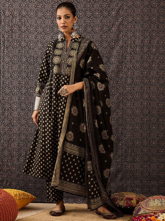 Dhiyona IE Ethnic Motifs Printed Pure Cotton Kurta with Trousers & Dupatta