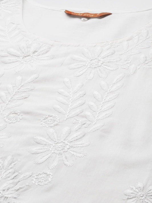 Dhiyona IE Floral Embroidered Empire Thread Work Pure Cotton Kurta with Trousers & Dupatta