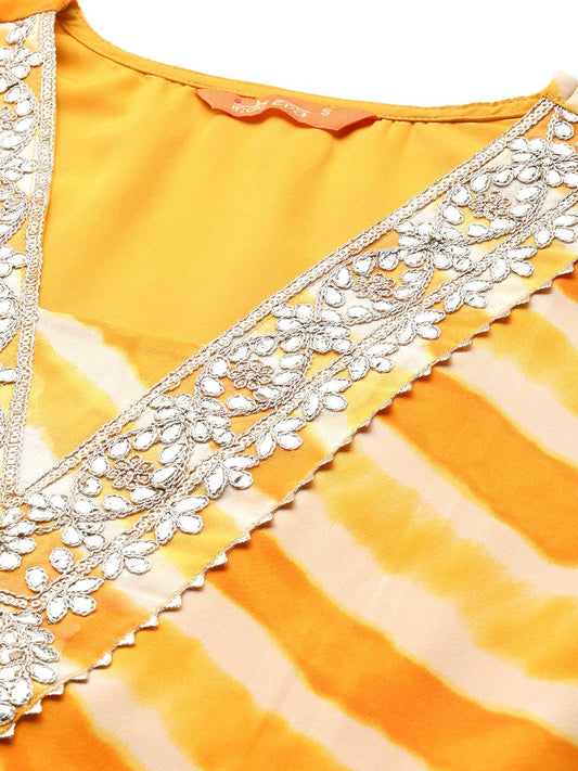 Dhiyona IE Leheriya Printed Gotta Patti Georgette Kurta