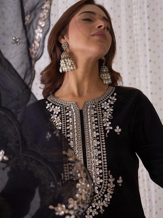 Dhiyona IE Floral Embroidered Regular Sequinned Kurta with Trousers & Dupatta