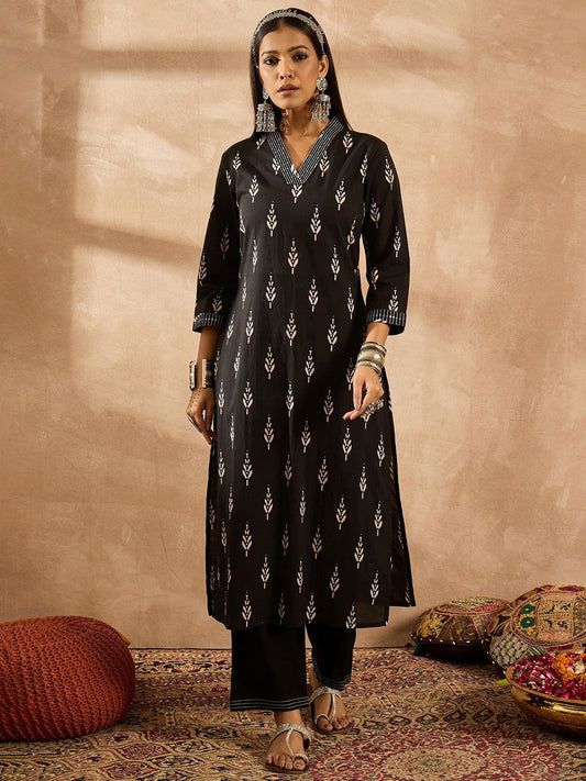 Dhiyona IE Floral Printed A-Line Pure Cotton Kurta With Trousers