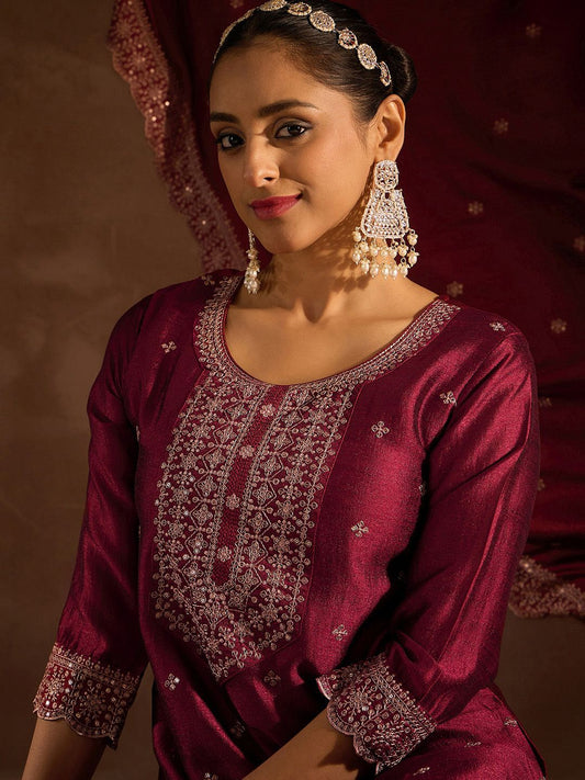 Dhiyona IE Ethnic Motifs Embroidered Regular Liva Zari Kurta With Trousers & Dupatta