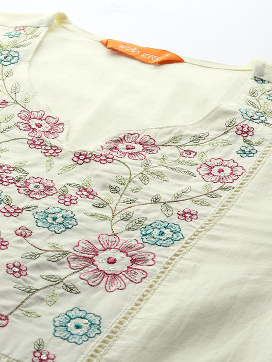 Dhiyona IE Floral Embroidered Pure Cotton Kurta with Trousers & Dupatta