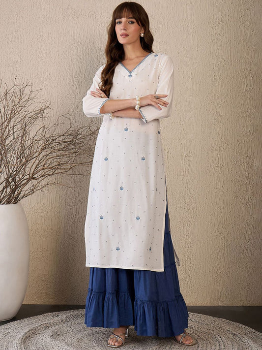 Dhiyona IE Solid Pure Cotton Kurta with Geometric Thread Work