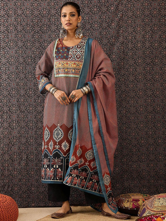 Dhiyona IE Women Printed Regular Pure Cotton Kurta with Trousers & With Dupatta