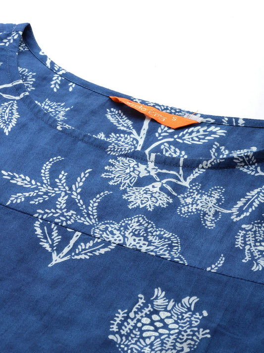 Dhiyona IE Floral Printed Indigo Kurta
