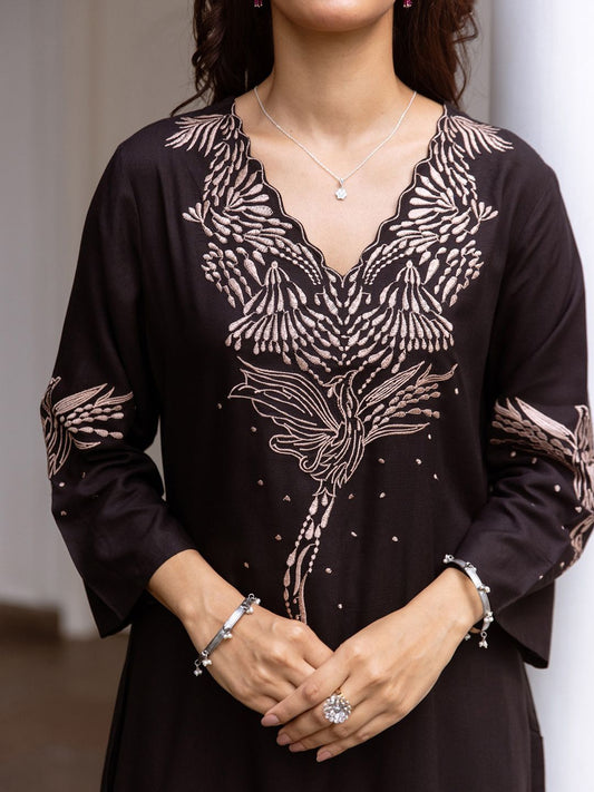 Dhiyona IE Floral Embroidered Thread Work Kurta