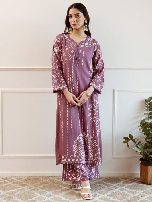 Dhiyona IE Women Printed Regular Beads and Stones Kurta with Trousers