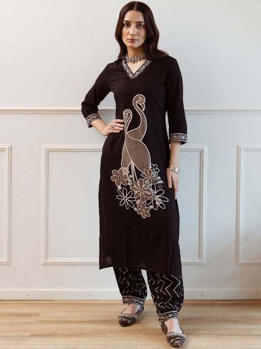 Dhiyona IE Women Embroidered Regular Beads and Stones Kurta with Trousers