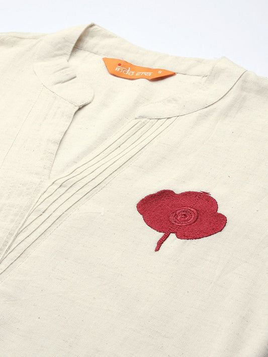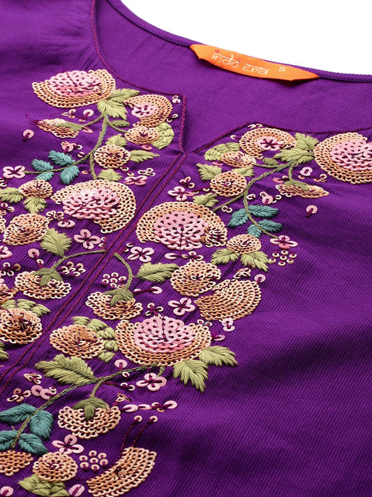 Dhiyona IE Floral Embroidered Sequinned Pure Cotton Kurta with Trousers