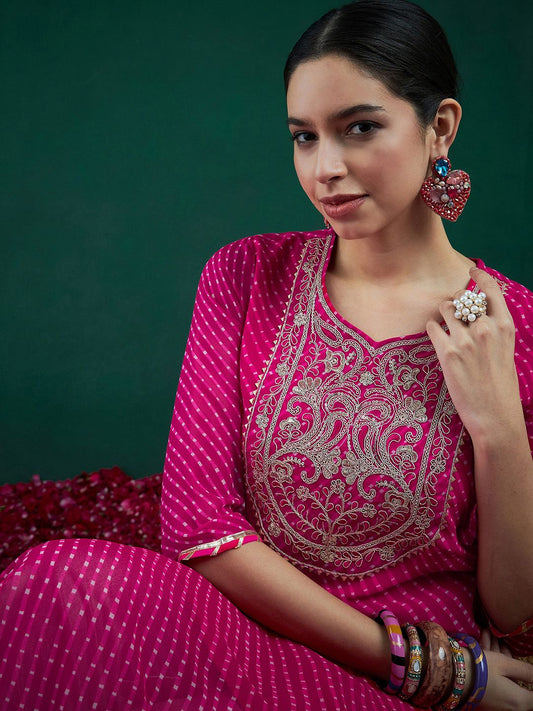 Buy 2 Get 1 FreeVendor:Dhiyona IEDhiyona IE Women Pink Yoke Design Regular Kurta with Palazzos & Dupatta