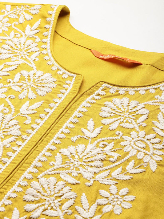 Dhiyona IE Floral Embroidered Thread Work Kurta