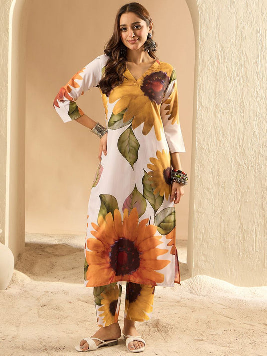 Dhiyona IE Floral Printed Pure Cotton Straight Kurta With Trousers
