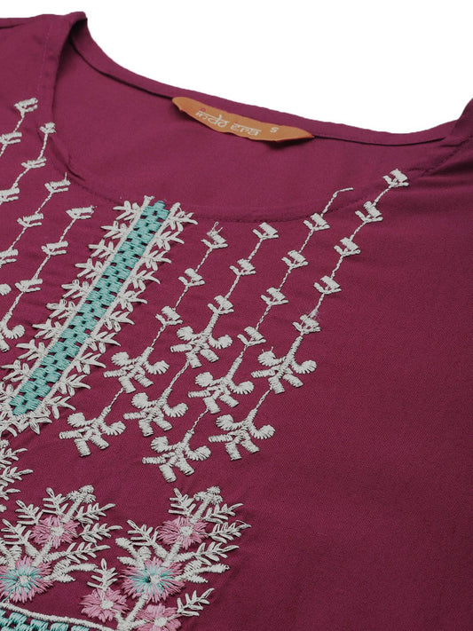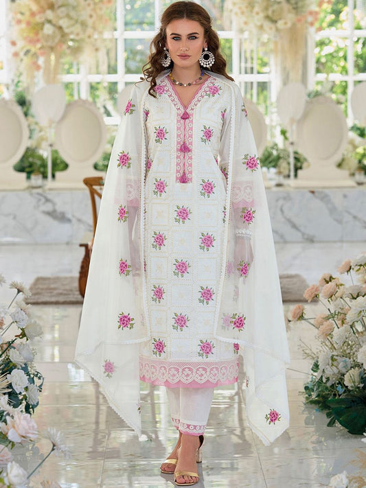 Dhiyona IE Floral Embroidered Thread Work Pure Cotton A-Line Kurta with Trouser & Dupatta
