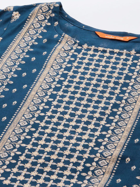 Dhiyona IE Teal blue Ethnic Motifs Printed Pure Cotton Kurta with Trouser & Dupatta