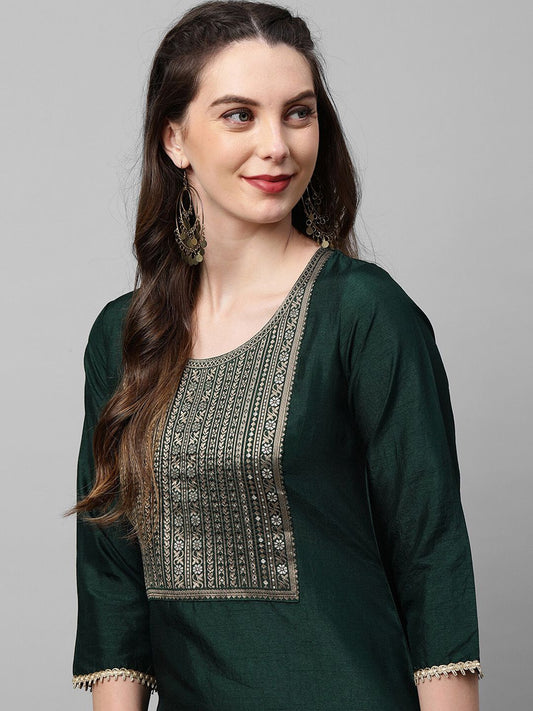 Buy 2 Get 1 FreeVendor:Dhiyona IEDhiyona IE Women Green Yoke Design Regular Kurta with Palazzos & Dupatta