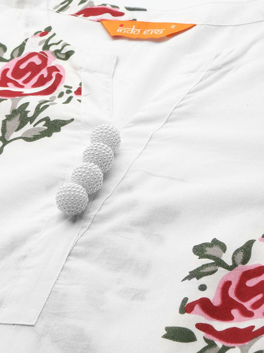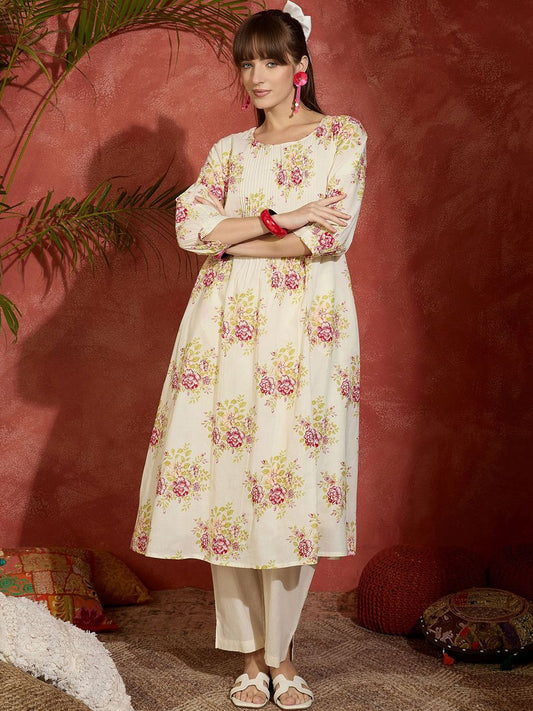 Dhiyona IE Floral Printed Regular Pure Cotton Kurta with Trousers